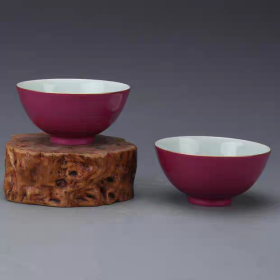清官窑胭脂红釉碗