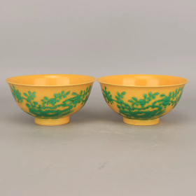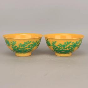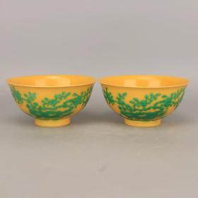 清官窑黄地素三彩寿桃纹碗一对