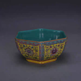 清官窑珐琅彩描金回纹六方碗