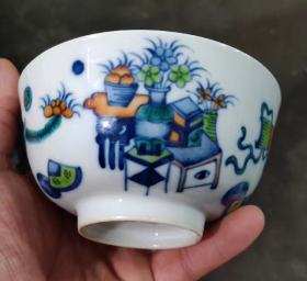 清官窑斗彩博古纹碗