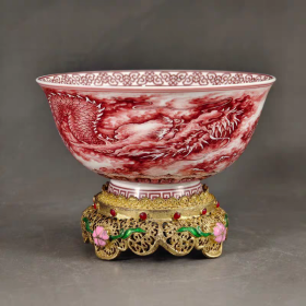 清官窑包铜红龙纹碗