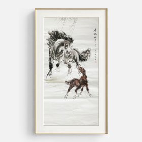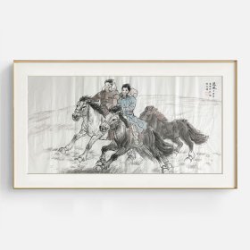 42-李永海44【乌云嘎的牧场】【有合影有授权书】少数民族美术促进会会员,当代画马研究学院艺委会委员,精选画芯(不带画框)作品,69x138cm