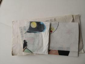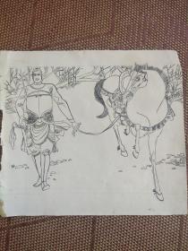 著名画家卢延光连环画《千里送京娘》(两个版本一是连环画报81年第九期一是与荆钗记合并出版)画稿底稿草稿。四页八面,如图,买家自鉴。可议价