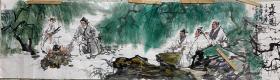 【本店没有仿品没有印刷品 全部保真】佘世忠,职业画家,湖南省美术家协会会员,中国书画报特聘画家。四尺对开横幅人物画6《竹林七贤雅聚图》(35×138CM)