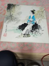 著名画家赵隆义,仕女画一张,赵隆义(1931.1—)上海人。擅长连环画、儿童画。从师张充仁 、哈定。1959年后历任人民美术出版社创作组、《连环画报》部美术组长、