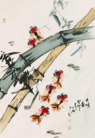 周小雨,辽宁省美协会员,阜新书画院画家,中国美术名家联合会常务理事,中国书画报特聘画家,首都画院理事。三尺斗方水墨国画花鸟画竹32《大顺图》(46cm×69cm)