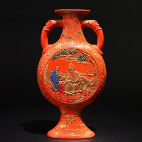 旧藏 上品硃砂:南极仙翁花瓶