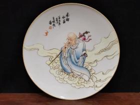 艺术瓷厂 南极仙翁 粉彩人物赏盘