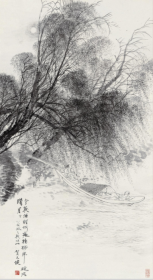 4291 贺天健 《 柳下相思 》 纸本印刷图片 画页 24X11.6厘米