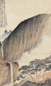 8874 贺天健 《松崖观瀑》 纸本印刷画页 画面尺寸14.8X27.7厘米