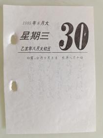 生日号纪念日历散页收藏(1995年8月30日星期三乙亥年八月五)