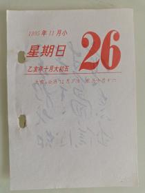 生日号纪念日日历散页收藏(1995年11月26日星期日乙亥年十月初五)
