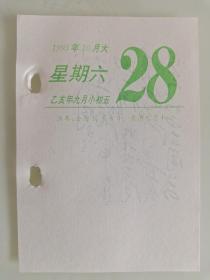 生日号纪念日历散页收藏(1995年10月28日星期六乙亥年九月初五)