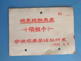 1958年 宁波市国家经租房屋领租卡 房主:周丁莲生(住:上海福建中路305弄15号)代理领租人:洪元宏(厂堂街31号)【房屋坐落:厂堂街36号】【国家房屋改造特殊时期的领租卡】