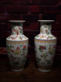 珐琅彩瓷器蝴蝶花卉平口赏瓶【一对】蝴蝶 如意纹 开片均衡自然 满功 釉色肥厚 浆体环绕 高度238mm 直径110mm 一对重量1390g 二斤七两
