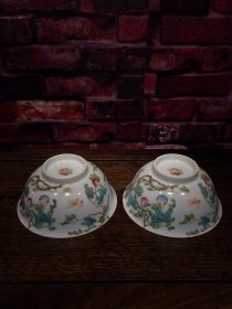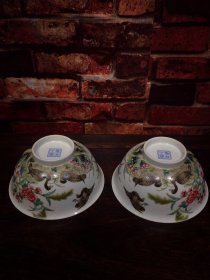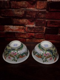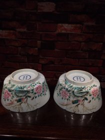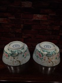 珐琅彩瓷器花鸟花卉祝寿碗【一对】题诗文 大碗 花开富贵 喜上眉梢 开片均衡自然 满功 釉色肥厚 浆体环绕 高度110mm 直径222mm 一对重量2760g 五斤半