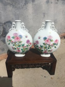 珐琅彩瓷器葵花花卉抱月瓶【一对】葵花花卉 蝴蝶 如意纹 花开富贵 开片均衡自然 满功 釉色肥厚 浆体环绕 高度278mm 长度205mm 宽度110mm 一对重量2550g 五斤一两