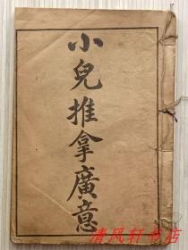 民国石印图文版《小儿推拿广义》上中下.三卷全“原藏者后合订为:全1册。”又名《幼科推拿广意》《推拿广意》 清:熊应雄 辑。规格:19.3cmX 13.2cmX 0.5cm。私藏品佳.内页整洁干净,封面缺失。 上卷:总论推拿之理,及儿科疾病诊断方法,并附推拿手法图说20余幅。 中卷:分述各种儿科常见病推拿疗法。 下卷:附方,选录小儿病的内服、外治药方180余首。 (推拿专著)