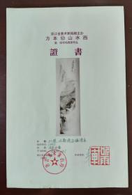 方本幼山水画拍卖作品证书(有本人签名及盖章)