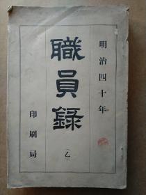 清末时期日本明治四十年职员录乙编含桦太厅北海道厅东京府京都府大坂府奈良县爱知县熊本县富山县等各厅府县行政学校等职员