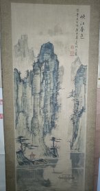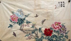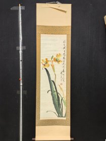 范乾海(广东岭南杨善深弟子,台湾著名书画家)范乾海/亿32精品花卉图立轴,纸本绫裱原装原裱,装裱精良,畫芯30×94厘米,整轴40×152厘米,实木轴头,款印如图品相如图