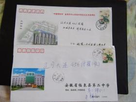 2006年安徽临泉 蒙城 芙蓉花邮资实寄封2枚合售
