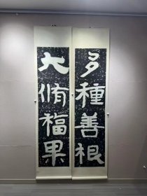 【复制商品】泰山经石峪金刚经集联,道布三千界,身修五百尊。微喷印制。五言原大一联(54*260厘米一条)。黑色
