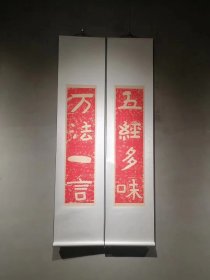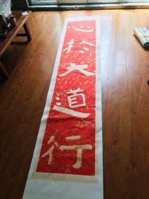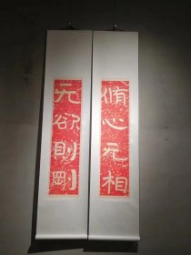 【复制商品】泰山经石峪金刚经集联。心于大道行 入定无他念。五字原大一对。一条52*260公分。宣纸微喷印制。红色