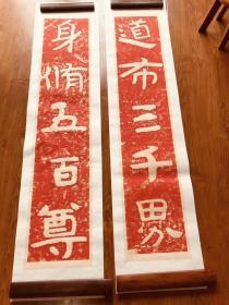 【复制商品】泰山经石峪金刚经集联,道布三千界,身修五百尊。微喷印制。五言原大一联(54*260厘米一条)红色
