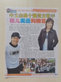 雪碧中国原创音乐流行榜杂志彩页3页,张学友容祖儿张柏芝陈小春羽泉阿杜谢霆锋Twins黄伊汶谭咏麟李克勤林忆莲黄品源水木年华陆毅郑中基郑希怡余文乐麦浚龙王蓉伍佰关心妍杨坤许茹芸Boy'z