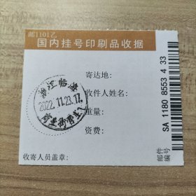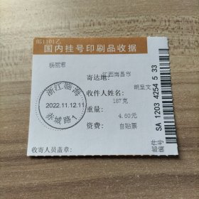 挂刷日戳 2022年11月12日邮戳 浙江临海赤城路1