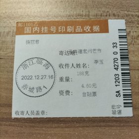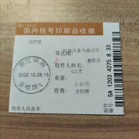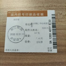 挂刷 2022年12月28日邮戳 浙江临海赤城路1
