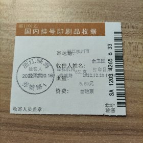 挂刷 2022年12月20日邮戳 浙江临海赤城路1