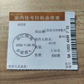 挂刷日戳 2022年10月15日邮戳 浙江临海赤城路1