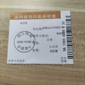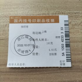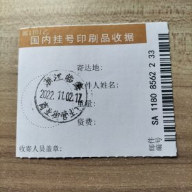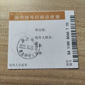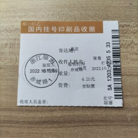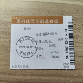 挂刷日戳 2022年10月22日邮戳 浙江临海赤城路1