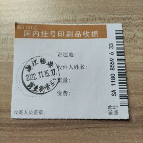 挂刷日戳 2022年11月15日邮戳 浙江临海商业街营业1