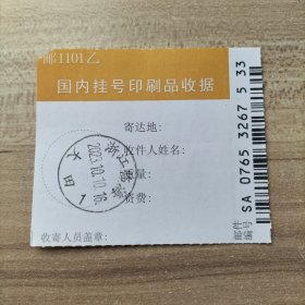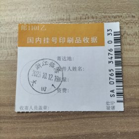 挂刷日戳 2023年10月12日邮戳 浙江临海大田1
