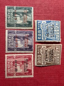 意大利邮票 1923年发行 向罗马进军纪念日~鹰利克托尔联盟和皇冠 航空工业利克托尔联盟五枚新票距今102年 原胶无贴 年代久远有溶胶 背发黄现象 留存不易 介意者勿拍