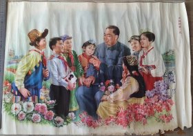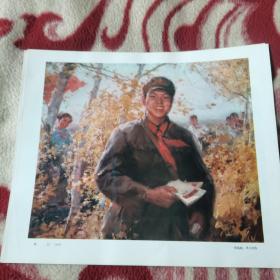 70年代美术插页,林龙华水彩《华国锋主席像》,李福来、祝福新油画《湘江两岸春常在(毛主席和华国锋)》,许勇、顾莲塘、李连仲、杨建友国画《边疆盛典》,(单张)