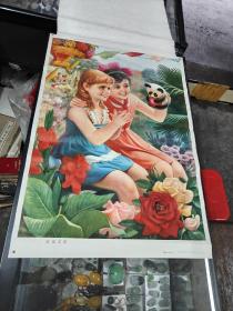 年画.友谊之花(祝福新/邹起奎作,1980年,天津人民美术出版,尺寸75x52.6,画边一点破,品相如图,看好在下单,纸品容易破损,售后不退)