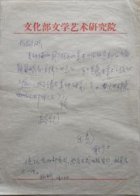 山西省社科联党组书记、省社科院副院长,中国红色文化研究会副会长、中国新文学学会副会长、《学术论丛》杂志主编,著名作家艾斐信札附《文艺研究》稿笺一页(山西社科院笺)
