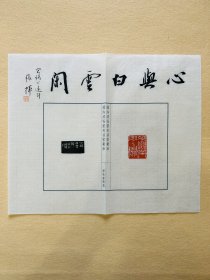 张挥,兰亭奖五次入展(第一、二、三、五、八届),第五届中国书坛兰亭雅集42人展入展,第十一、十二、十三届全国书法篆刻展等国家级展览二十五次入展。 中国书法家协会会员,江苏省书协新文艺群体委员会委员,中国书协培训中心网络班导师。 书法:心与白云闲(有合影,倒一排)。 印拓书法一幅,保真。 28x35cm (连史纸)。 印拓边款作者:西泠印社社员徐谷甫。 印文:同书法。d2909。
