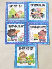 幼儿园教材故事画丛(全5册 合售,彩色48开)快乐岛、牛奶将军、不肯洗澡的小狗熊、冰淇淋罗罗、小熊得奖,绘画:金雪林、王晓明等,上海教育1993一版1995二印