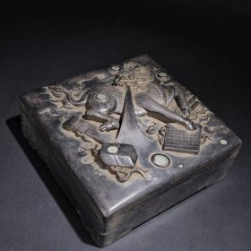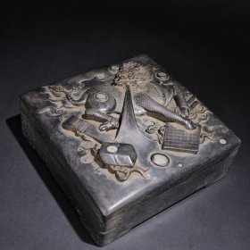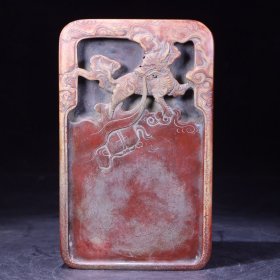 旧藏绿端石 麒麟送宝 鼓形端砚,石料墩厚完美,质地温润细腻,鼓身满饰麒麟、琴棋书画、海水云纹等,灵动精美,刀工细腻,铭文峻挺,包浆浑厚,印文:行有恒堂(载铨)。收藏赏用珍品。