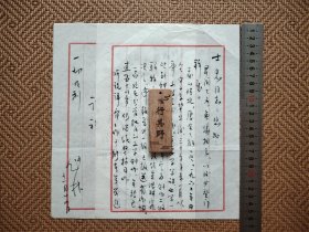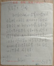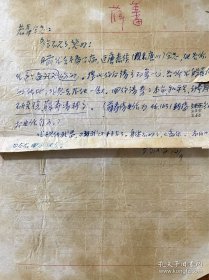 罗叔平(1910-1980,原名薛藩,薛叔屏,笔名骆方,左联作家,出版诗集《春天》,任新四军鄂豫边区兵工厂厂长兼政委被中原军区评为兵工英雄和一等劳模,解放战争任军事调处翻译、东北军区军工部大连化工厂厂长兼党委书记,新中国成立后,任一机部船舶工业局副局长和中国机械工程学会理事,跟随海军司令员肖劲光和周恩来总理赴苏联洽谈、访问)信札一通一页,纸背有一点小粘连不影响阅读。存放位置2-8-2