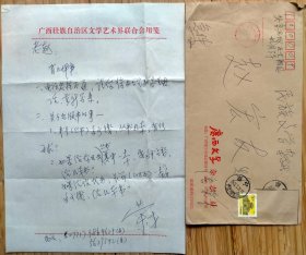 5240__广西作家潘荣才,笔名丁采,壮族,广西田东人,中共党员。《广西文学》杂志社,曾任副主编,编审。他还是广西教育学院中文系客座教授、广西民族大学中文学院社会课堂导师。-2000年致〈民族文学编辑部〉赵宏友信札,2页带封