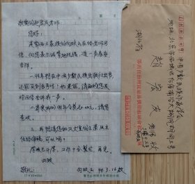牛汉致张炯信札1页附封。牛汉(1923-2013),本名史承汉,曾用笔名谷风,山西定襄人,蒙古族。现代著名诗人,文学家和作家,“七月”派代表诗人之一。1940年开始发表文学作品,主要写诗。曾任《新文学史料》主编、《中国》执行副主编,中国作家协会全国名誉委员、中国诗歌学会副会长。其诗作《悼念一棵枫树》《华南虎》《半棵树》等诗广为传诵,曾出版《牛汉诗文集》等。