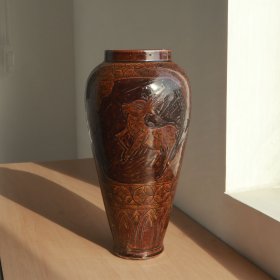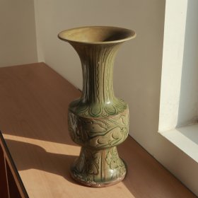 宋耀州窑瑞鹿纹花瓶 高22厘米直径12厘米