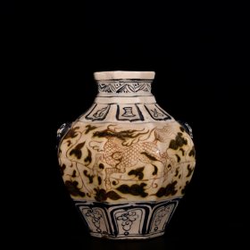 酱釉瑞鹿纹罐 老窑瓷器陶瓷 古董文玩