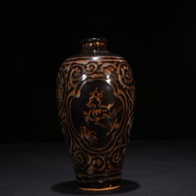 瓷器 宋吉州窑瑞鹿纹胆瓶 25*11厘米